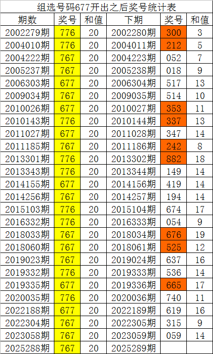 从以上统计不错看出,直选号码767出现之后,其下期奖号:1.下期质数出现概率100%; 三、历史组选同号分析 福彩3D第2025288期开出组选号码:677,该号码历史上组选出现了26次,其下期鉴识开出了号码:300、212、052、018、517、514、353、337、347、242、882、149、419、194、674、054、676、525、637、536、665、740、619、315、059,如图: