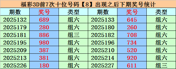 十位分析:十位上期奖号为8,历史上十位号码8已出现841次,最近100期该号码开出8次,上期号码遗漏值为72期。 在十位开奖中,号码8前7次出现之后,下期奖号远离为:4、6、0、3、2、2、1,其中奖号奇偶比为2:5,大小比为1:6,012路比为3:2:2。 本期十位严防大号出现,胆码温煦8。