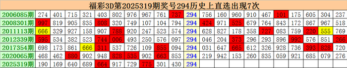 上期精良:福彩3D第2025319期开出奖号294。