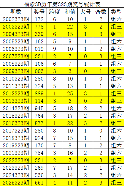 福彩3D第2025323期奖号为551。 福彩3D积年第324期同期折柳开出奖号:389、060、836、139、147、112、991、942、298、436、114、167、935、698、663、637、319、432、886、408、495、384,堤防统计见下表: