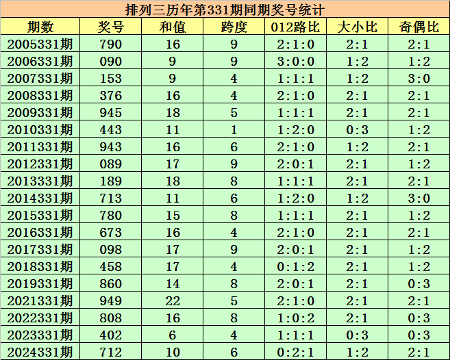 和值分析:在第331期历史同时开奖中,奖号和值共开出10个,和值波动区间在6-22之间,散布界限相对较广,其中0-9区段和值开出3次,在10-17区段出现13,在18-27区段开出3次,本期瞻望和值走小,出现时0-9区段。 大小比分析:第331期历史同时奖号中,号码大小比开出29:28,大小 号码出现比例相当,其中两小一大组合开出5次,全大组合开出0次,全小组合开出2次,两大一小组合开出12次,本期重心详确小 号热出,看好出现全小组合。 奇偶分析:在摆设三第331期历史同时开奖中,两偶一奇组合出现6期,全奇组合出现2期,全偶组合出现3期,两奇一偶组合出现8期,号码奇偶总比例为28:29,奇偶号码走势均衡,本期顺应温暖奇数号码热出,奇偶比看好2:1。