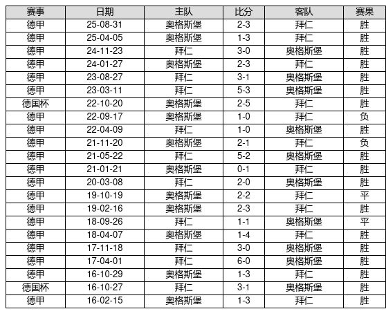 拜仁 VS 奥格斯堡两队近10年的交战次数为22场,拜仁18胜2平2负,赢球概率为81.8%,平局概率为9.1%,输球概率为9.1%。